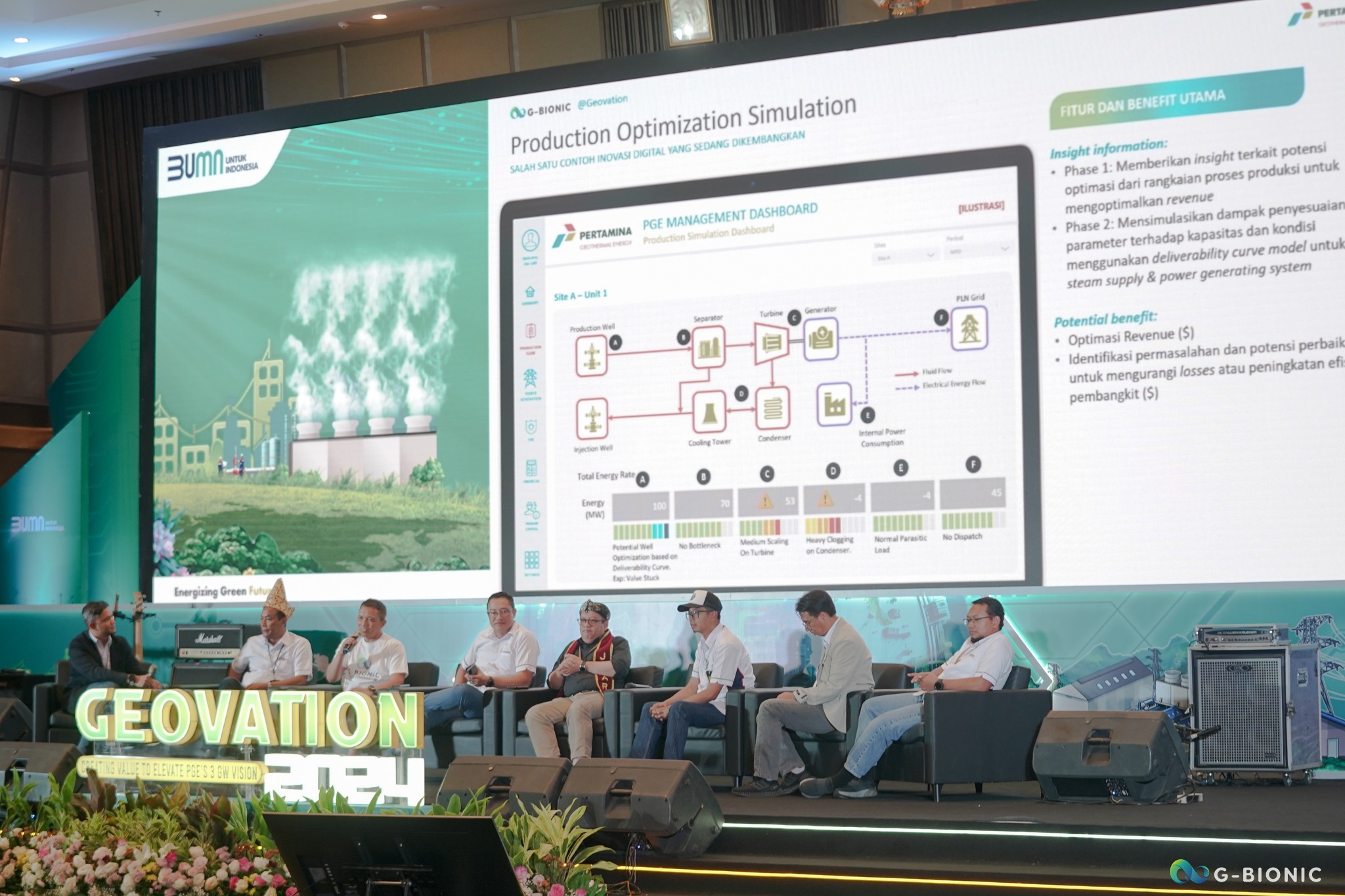 The Innovation Talk session at Pertamina Geothermal Energy’s (PGE) Geovation event opened with remarks from the Director of Operations, followed by a dynamic panel discussion featuring the Vice President of Operations & Engineering and General Managers from Kamojang, Karaha, Lahendong, Lumut Balai, and Ulubelu Areas. The session set the stage for strategic conversations around innovation, digital transformation, and operational excellence.