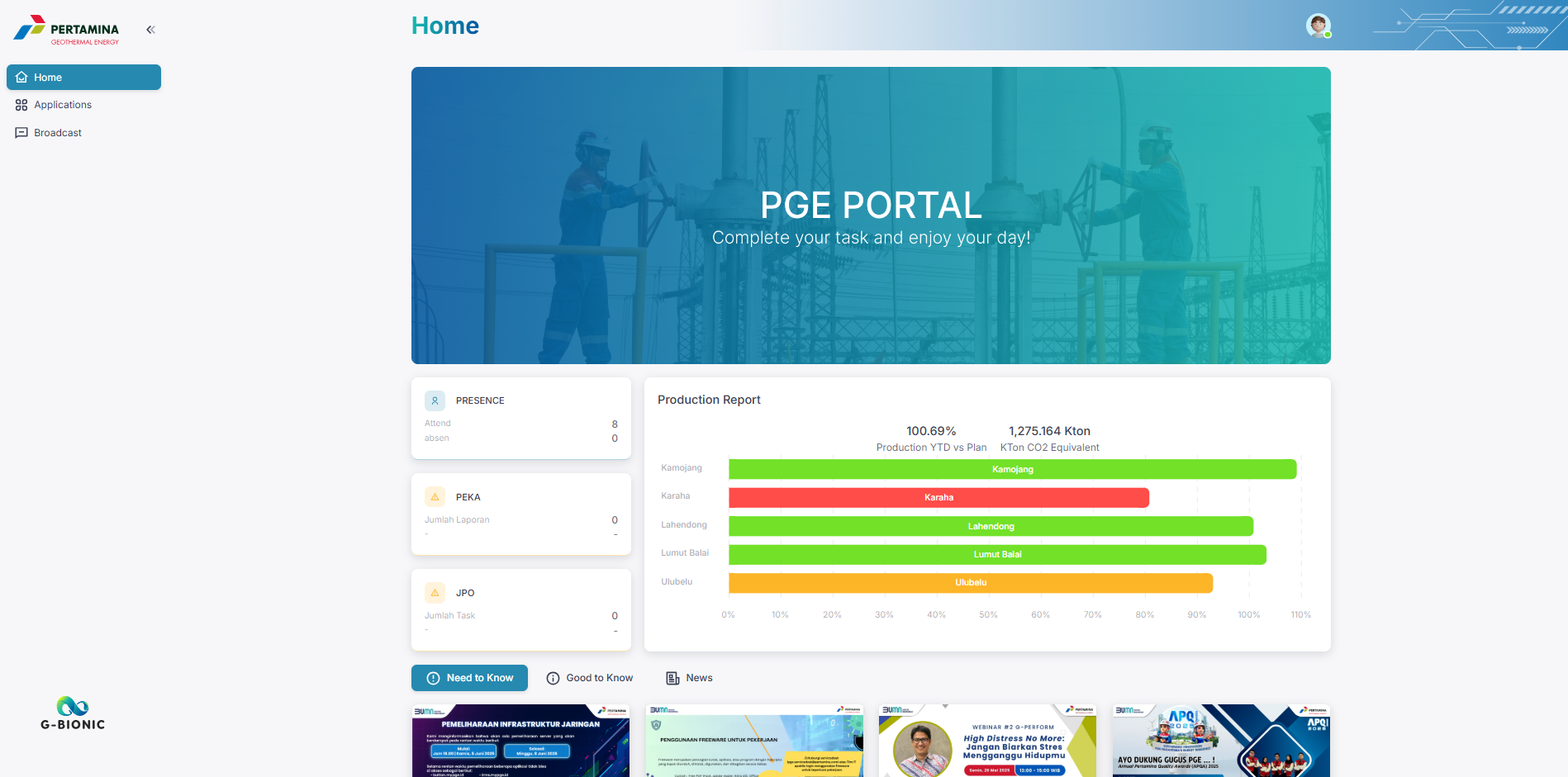 As part of Pertamina Geothermal Energy's (PGE) commitment to continuous digital transformation, G-Bionic team has been actively enhancing various internal platforms, including MyPGE Portal—the central digital hub for information and services accessible to all PGE employees.